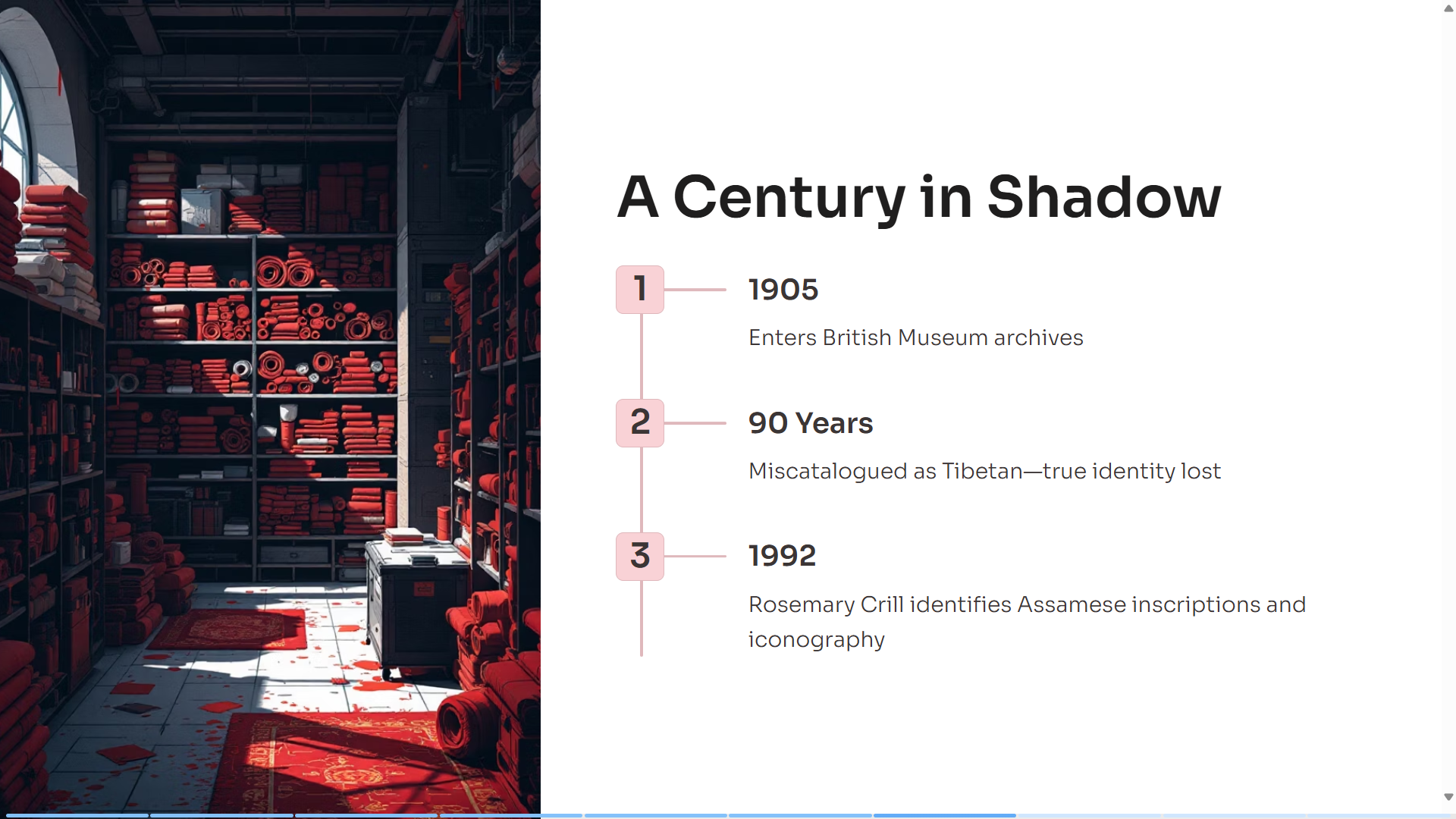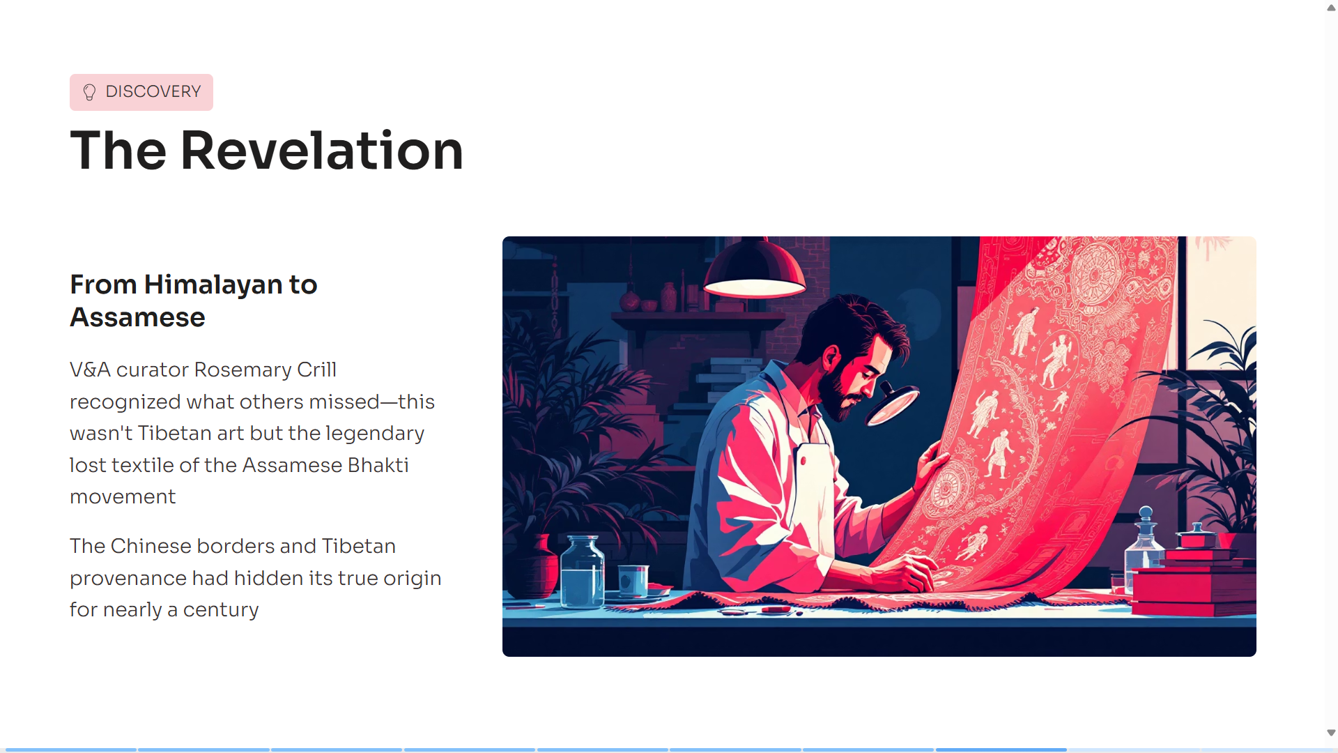 It wasn’t until 1992 that Rosemary Crill, a curator from the Victoria & Albert Museum, identified the iconography and the Assamese inscriptions. She realized this wasn’t Tibetan art, but the legendary “lost” textile of the Assamese Bhakti movement.
